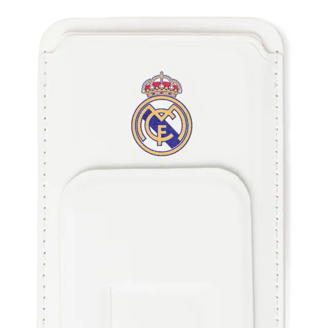 Connect with your passion using this Real Madrid TPU soft card holder with support and universal 3M sticker for use with any cell phone. Measurements: 0.5 x 6.5 x 9.5cm.