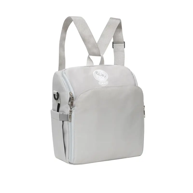 Safety, comfort and passion come together in this Real Madrid baby booster seat. It combines the functionality of a high chair with an ergonomic design, high-quality materials and a secure locking system. It also incorporates a removable, large-capacity bag, perfect for carrying all the essentials, from nappies to toys.