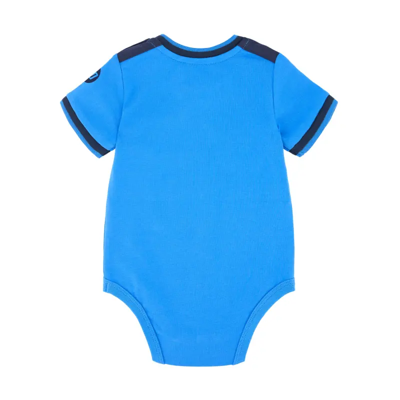 Real Madrid pride from birth. This blue short-sleeved bodysuit features the Real Madrid colors for the new season. Comfortable and soft, perfect for babies' delicate skin, this bodysuit is ideal for future champions.