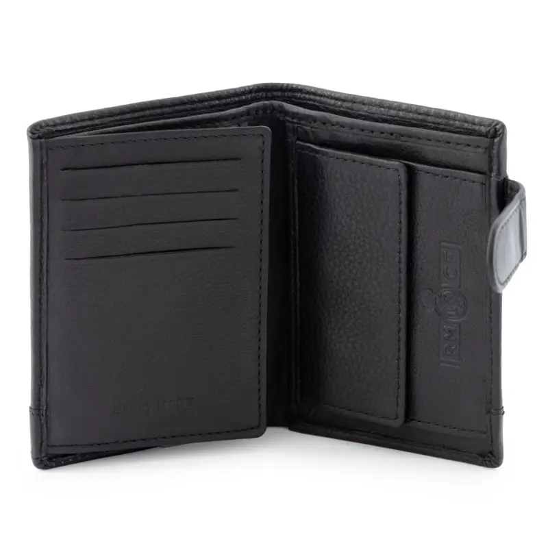 Black Leather Vertical Wallet With Coin Pocket Real Madrid