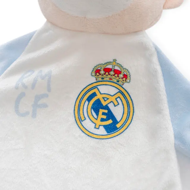 The perfect companion for little Madrid fans. This blue Real Madrid teddy bear will become an inseparable companion for the nights and naps of future champions. Made with delicate fabrics that are soft on babies’ skin, it offers comfort and security as it accompanies little ones from the cradle.
