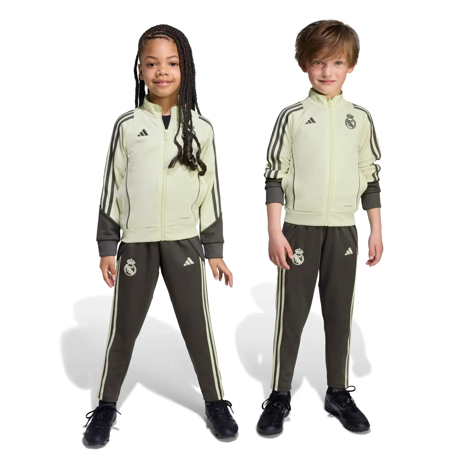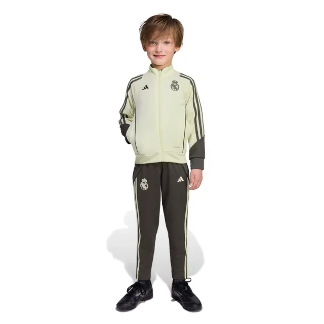 Dress your little super fan in Real Madrid style from head to toe. Finished in colours inspired by the club’s away kit, this infants’ adidas track suit displays a club badge on the chest and leg. Soft doubleknit fabric and moisture-managing AEROREADY ensure they stay comfortable as they begin a brand-new football adventure.
