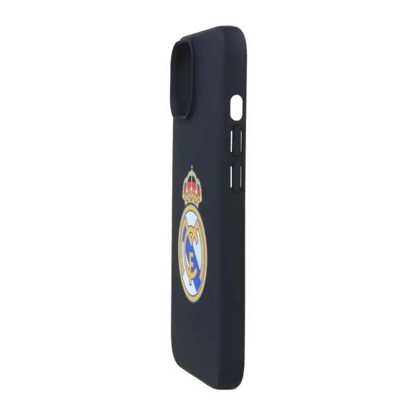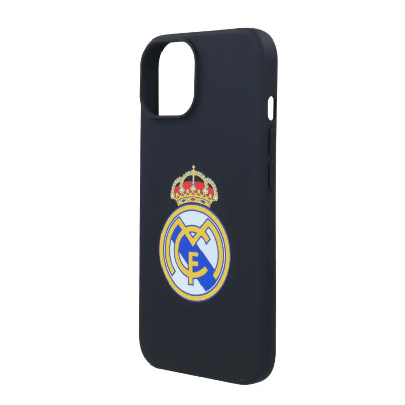 Designed for Real Madrid enthusiasts, this black iPhone 15 Plus case prominently displays the club crest. With its sleek design and sturdy build, it’s perfect for showing off your loyalty while keeping your phone protected.