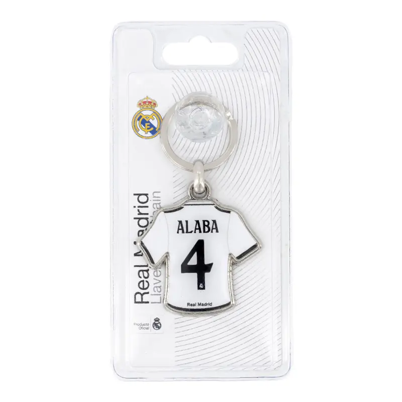Get the official Alaba jersey keychain! With the 4 on the back and a detailed design that replicates the iconic Real Madrid defender's jersey, this keychain will go everywhere with you, showing your passion for the club and your admiration for Alaba.