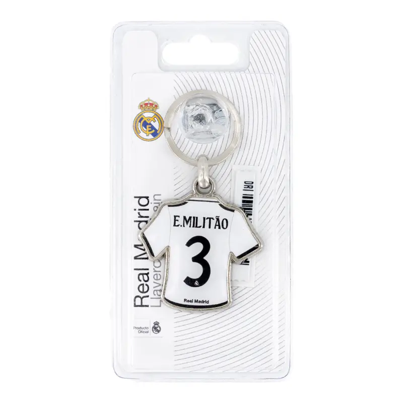 Get the official Militao jersey keychain! With the 3 on the back and a detailed design that replicates the iconic Real Madrid defender's jersey, this keychain will go everywhere with you, showing your passion for the club and your admiration for Militao.