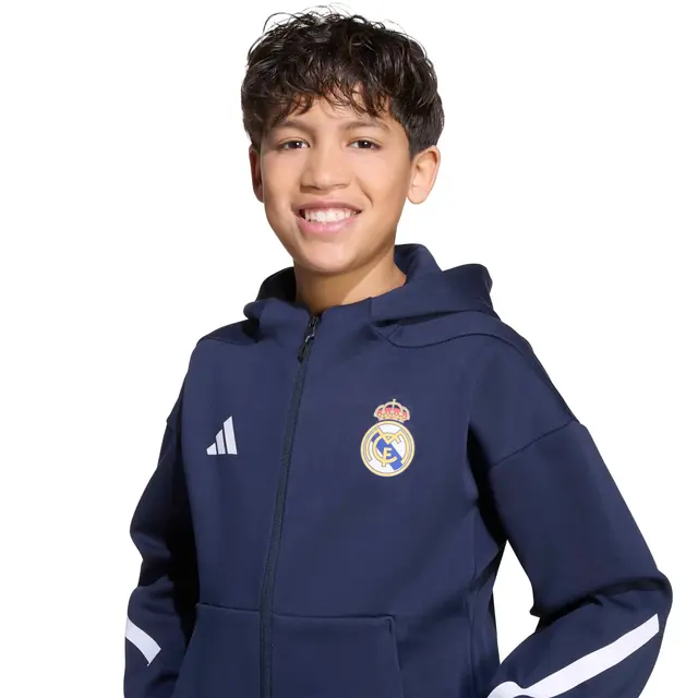 Created to keep you focused, this Real Madrid jacket is from the ADIDAS Z.N.E. family. A juniors’ version of the football hoodie the players wear as they walk onto the field, it’s built from soft doubleknit fabric to help tune out distractions. On top of the spacious hood, a club graphic completes a look that will make young Madridistas proud.