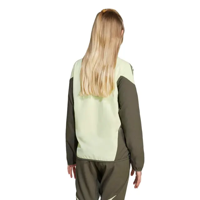 Finished in colours inspired by the club’s away kit, this is a juniors’ version of the adidas football jacket that keeps the Real Madrid squad looking like a team off the field. It features lightweight fabric and moisture-managing AEROREADY to remove distractions and deliver comfortable movement. That woven badge on the chest helps you represent.