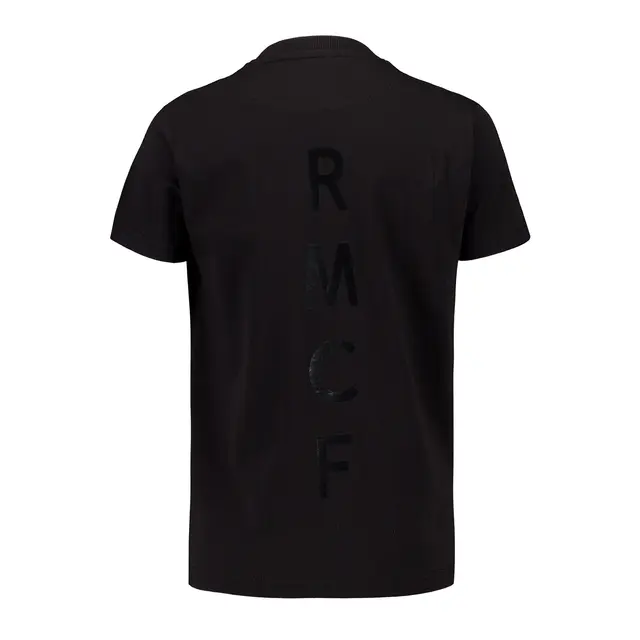 Discover this black youth t-shirt with RMFC backprint from the Blackout collection. This piece represents the perfect balance between simplicity and sophistication, featuring a monochrome print that takes sportswear elegance to the next level.