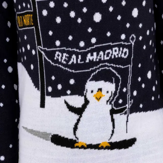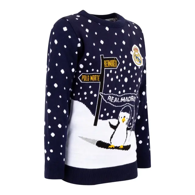 That’s the spirit. Celebrate this special time of the year giving away a unique gift for authentic football fans and future champions. Real Madrid youth blue christmas sweater.
