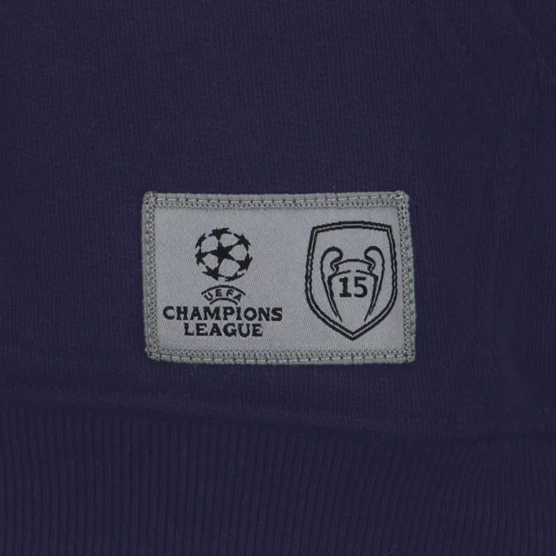 Show your support for Real Madrid's quest for the Champions League cup with this exclusive Navy Hoodie! Featuring the iconic Champions League logo and Real Madrid's 15 trophies badge, this item is the perfect accessory to cheer on the team towards the final victory. Let's keep making history, Hala Madrid!