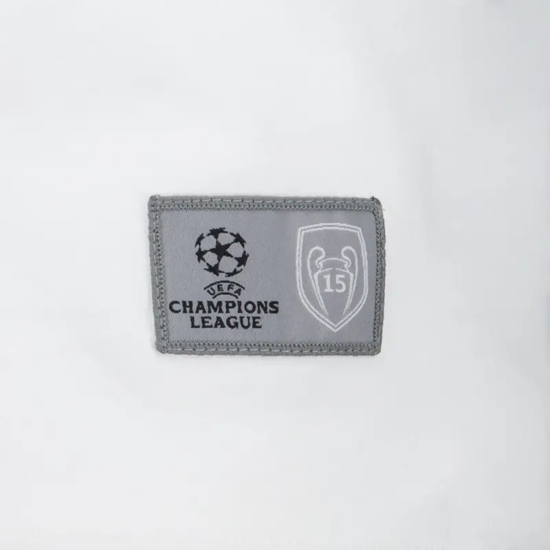 Show your support for Real Madrid's quest for the Champions League cup with this exclusive White T-shirt! Featuring the iconic Champions League logo and Real Madrid's 15 trophies badge, this item is the perfect accessory to cheer on the team towards the final victory. Let's keep making history, Hala Madrid!