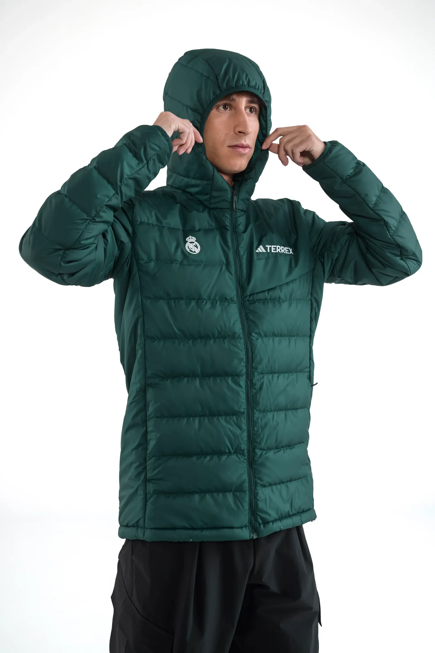 With a hybrid blend of down and synthetic insulation, this adidas Terrex insulated jacket balances warmth and packability for hiking and exploring. CLIMAWARM traps heat and releases sweat for a warm, dry and focused performance. Wear it as a standalone layer or under a storm shell for added warmth. A hood adds coverage for windy ridgetops and blustery conditions. Insulating materials trap warmth for optimal body temperature. Beat the elements with thermal insulation and water-repellency for optimal shell-layer protection.