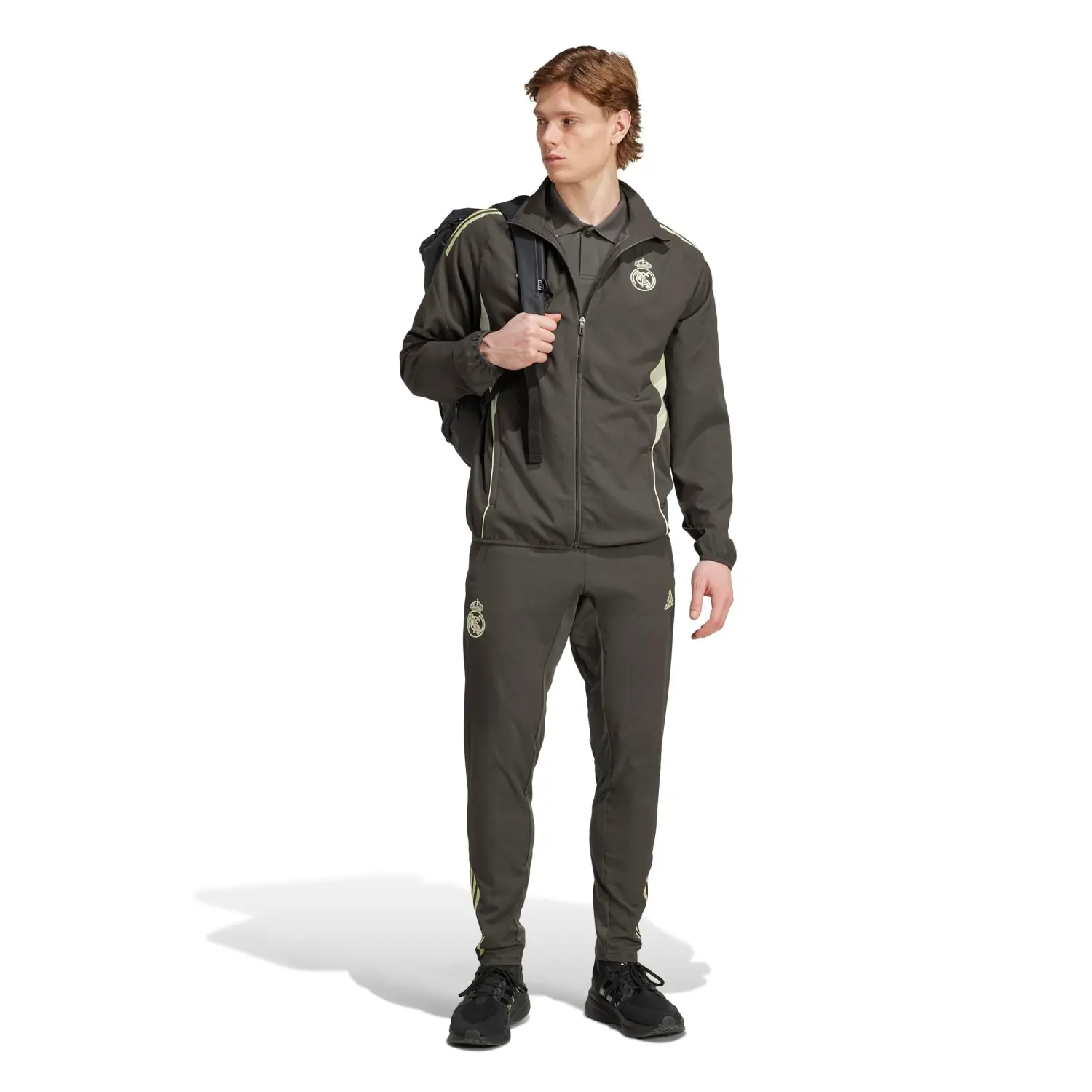 Finished in colours inspired by the club’s away kit, this adidas football jacket ensures the Real Madrid squad look like a team off the field. It features lightweight fabric and moisture-managing AEROREADY to remove distractions and deliver comfortable movement. That woven badge on the chest helps you represent.