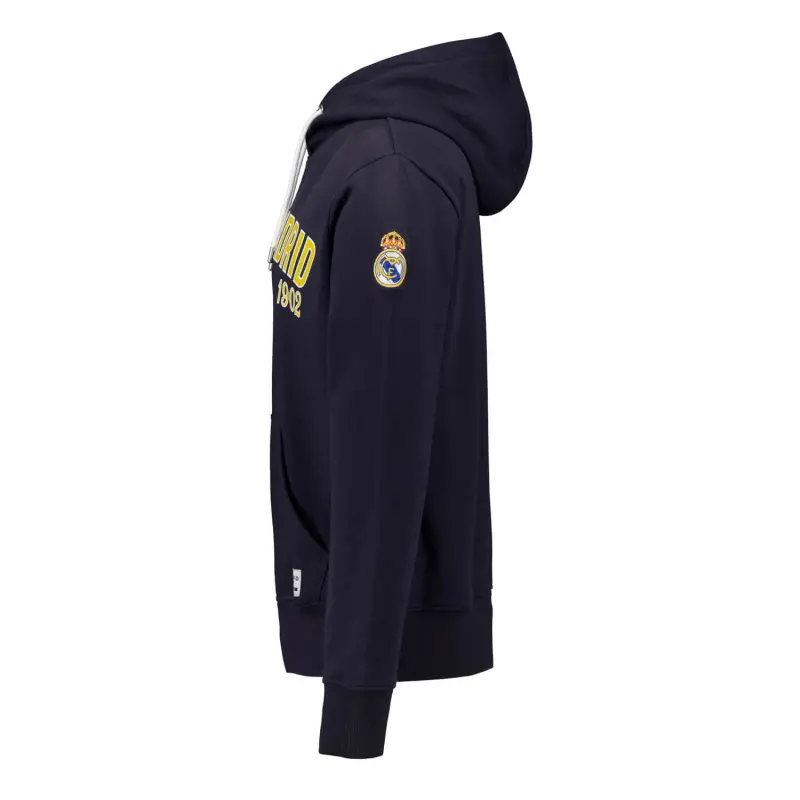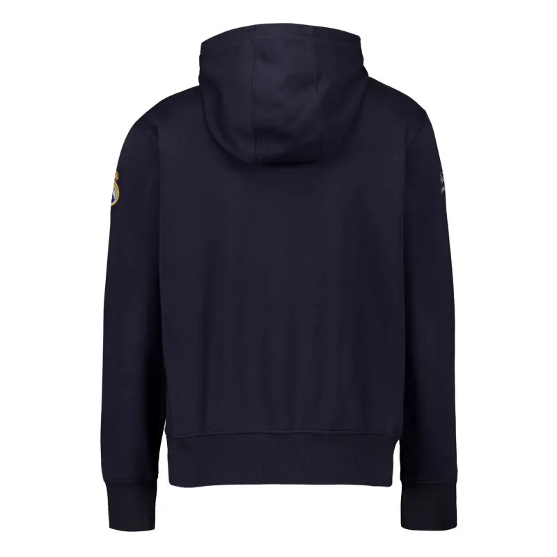 Discover this navy men's Real Madrid baseball hoodie, inspired by classic baseball style with an urban twist.