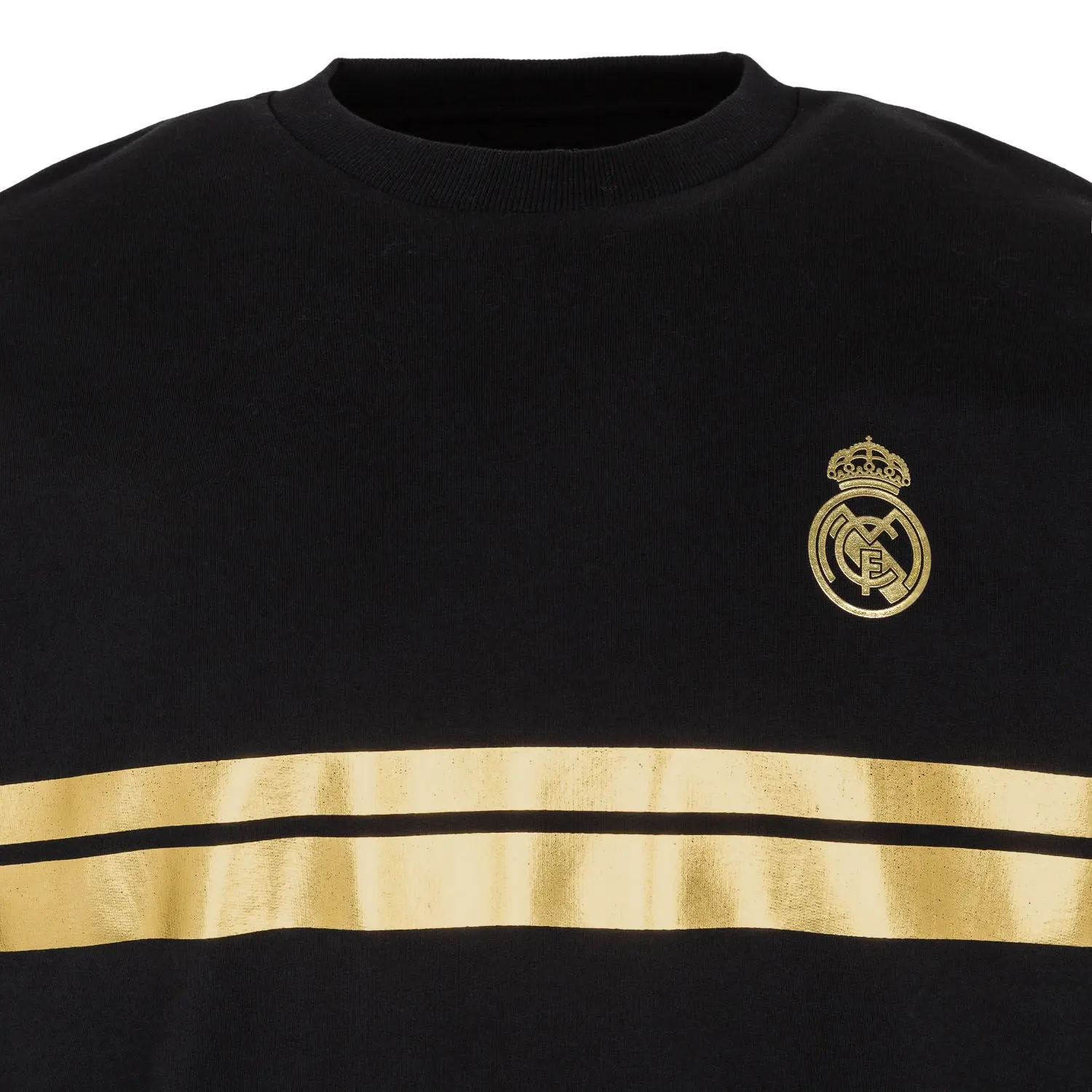 Real Madrid is characterised by its winning spirit and its hunger for trophies. This is why the club has created the Black and Gold collection, a different way of experiencing football for all fans who are in search of the madridista essence. The golden touches are a reflection of the successes and trophies won in the 20th century by the team with the most Champions League trophies in history. The garments are black and gold, where you can see the initials RMCF indicating its exclusive style.