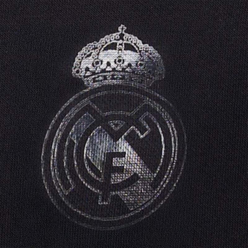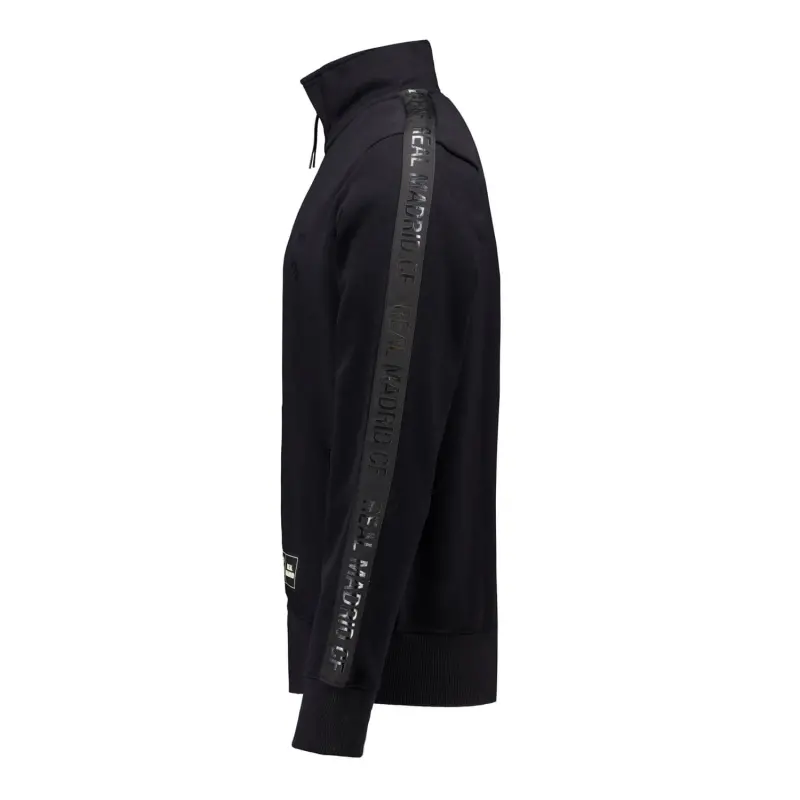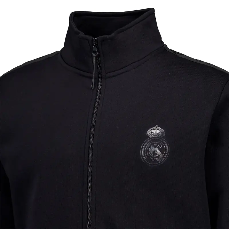 Discover this black mens track top with Real Madrid tape from the Blackout collection. This piece represents the perfect balance between simplicity and sophistication, featuring a monochrome print that takes sportswear elegance to the next level.