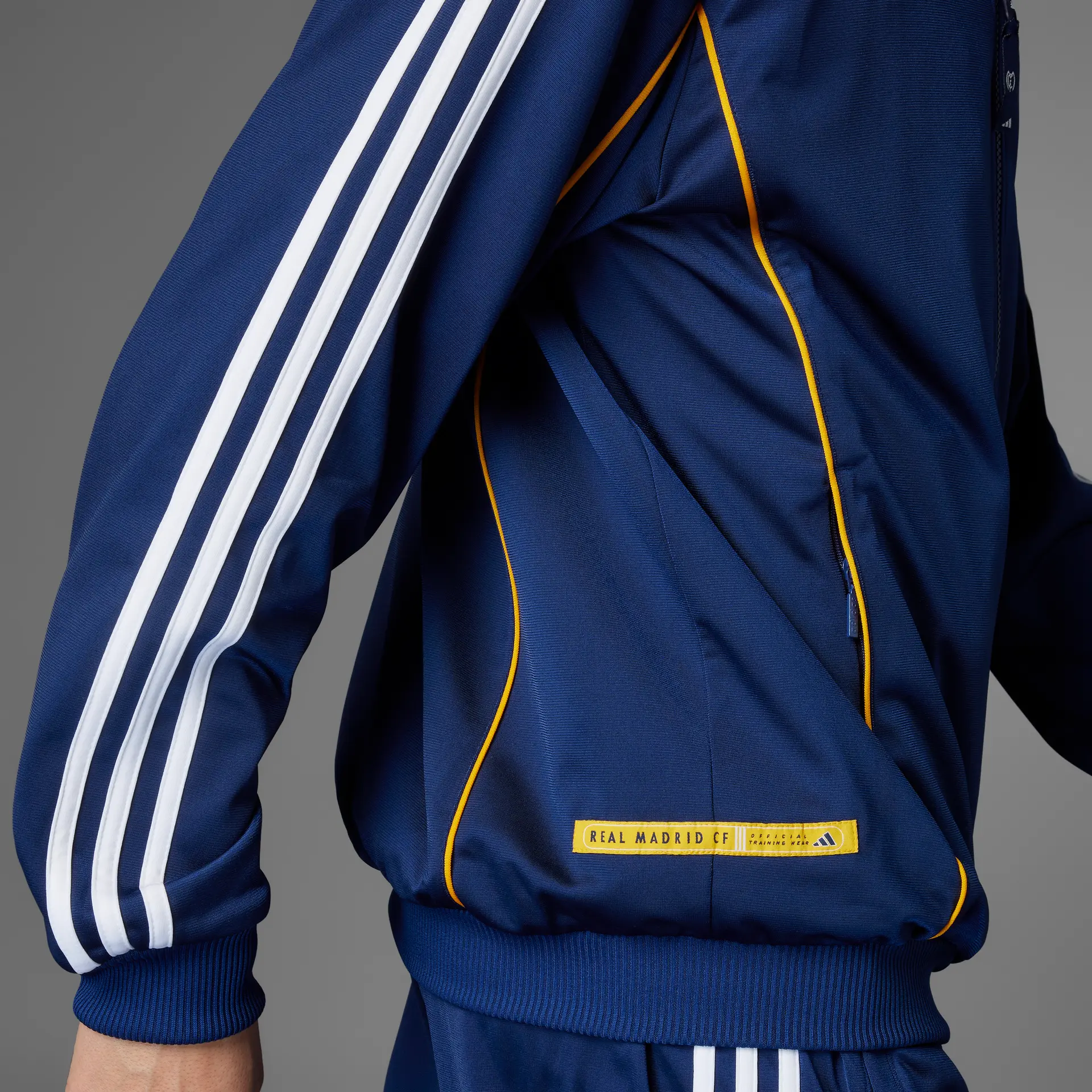 Celebrate an unforgettable European triumph during the club’s successful 1999/00 season with this adidas Real Madrid track jacket. It’s modeled after the style worn on the sidelines. Plus, its relaxed, ’90s design is ideal for layering and a true statement of authentic football style. It’s made from smooth tricot fabric and features a woven vintage club badge for a cool finish.