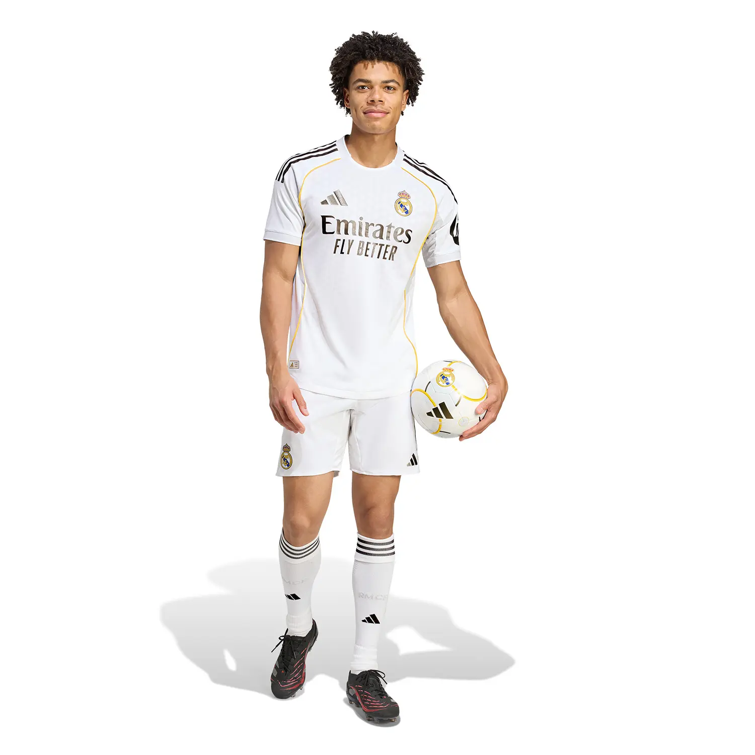 Built on solid foundations. As part of Real Madrid’s home kit, which marks the Bernabéu’s recent renovation, these men’s adidas football shorts show your support with an embroidered club badge above the hem. AEROREADY subtly wicks away moisture to keep you dry, whether you’re on the pitch or in the stands.