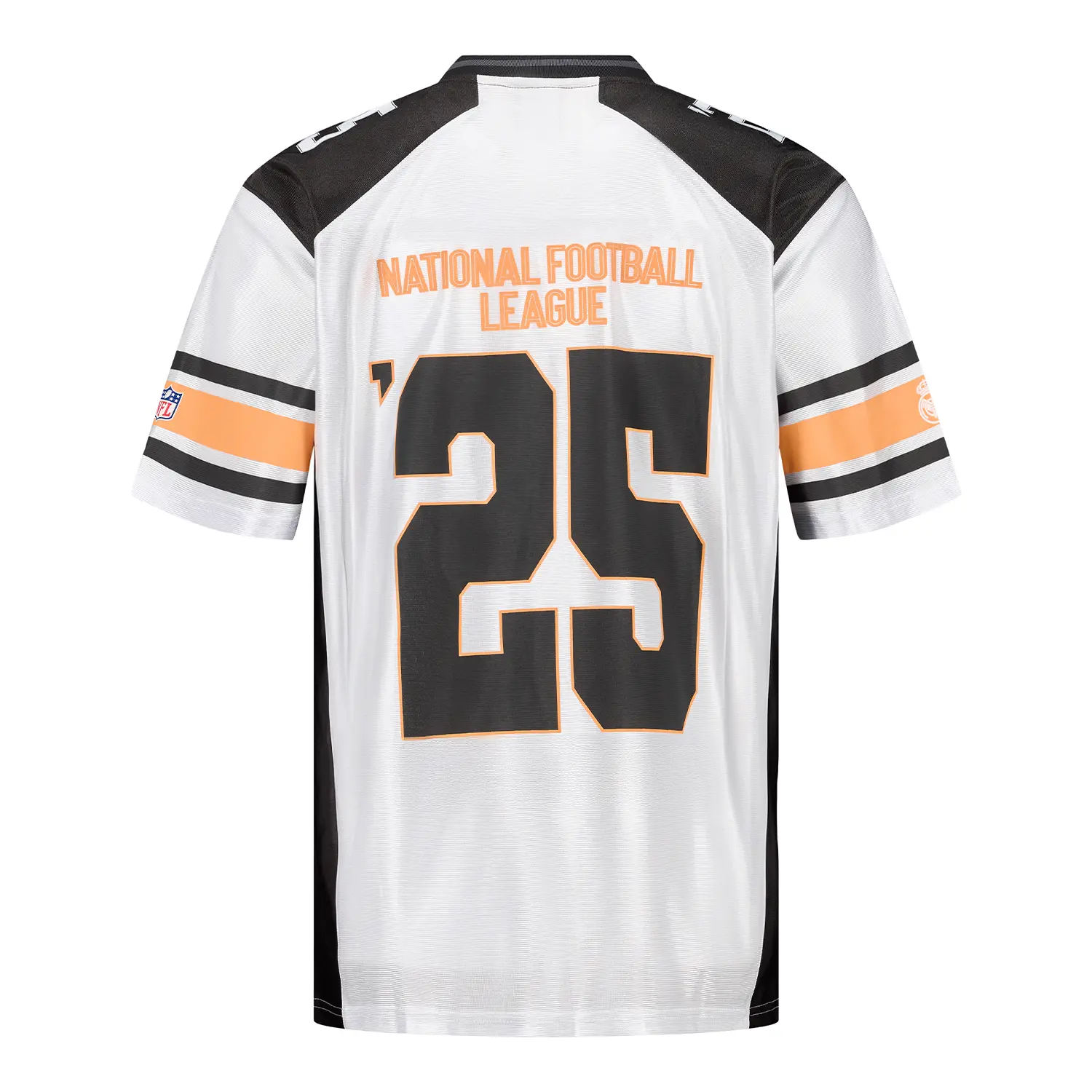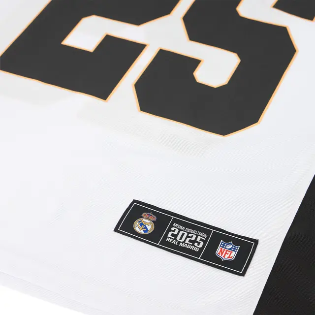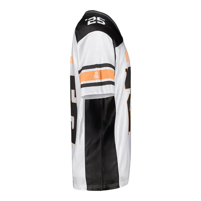 The excitement of the NFL arrives at the Santiago Bernabéu! Celebrate this historic moment with this Official Real Madrid CF x NFL white mens shirt. Inspired by the iconic style of American football, this piece blends the greatness of Real Madrid with the unmistakable aesthetics of the NFL.