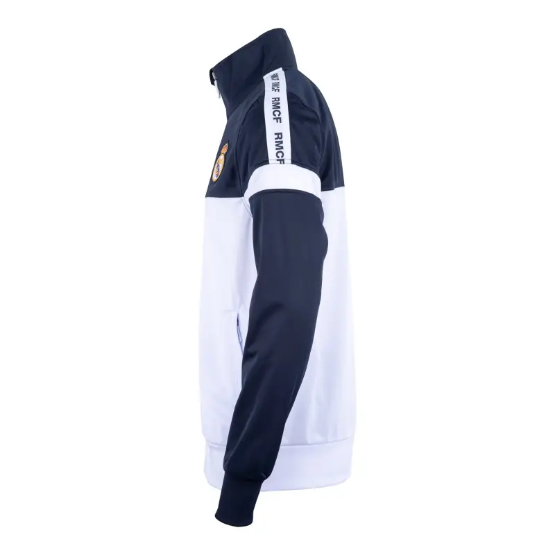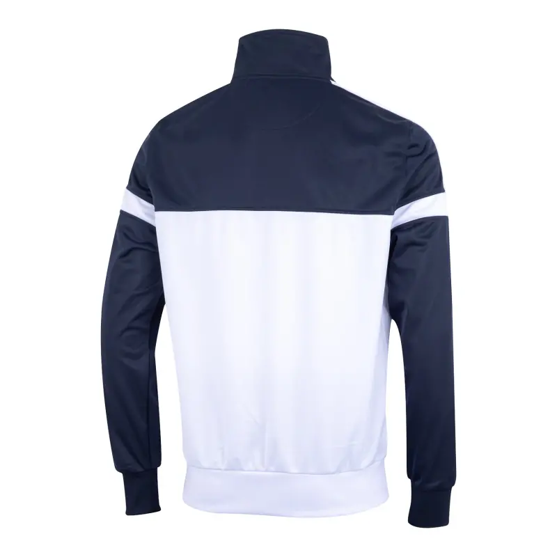 Its training time, we know. Two-piece fitness tracksuit: zip-up jacket and pants. A white stripe on the shoulder pads and a badge on the chest that reveals your football passion.