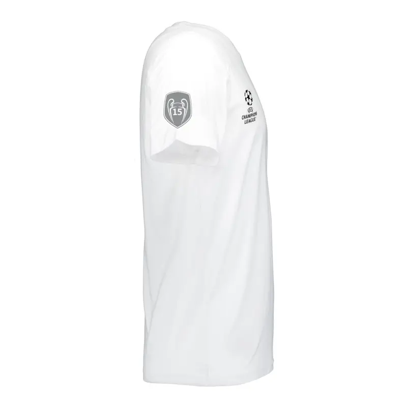 Show your support for Real Madrid's quest for the Champions League cup with this exclusive White T-shirt! Featuring the iconic Champions League logo and Real Madrid's 15 trophies badge, this item is the perfect accessory to cheer on the team towards the final victory. Let's keep making history, Hala Madrid!