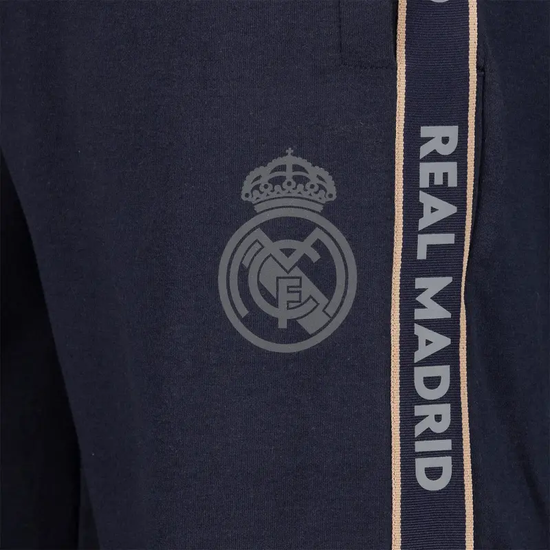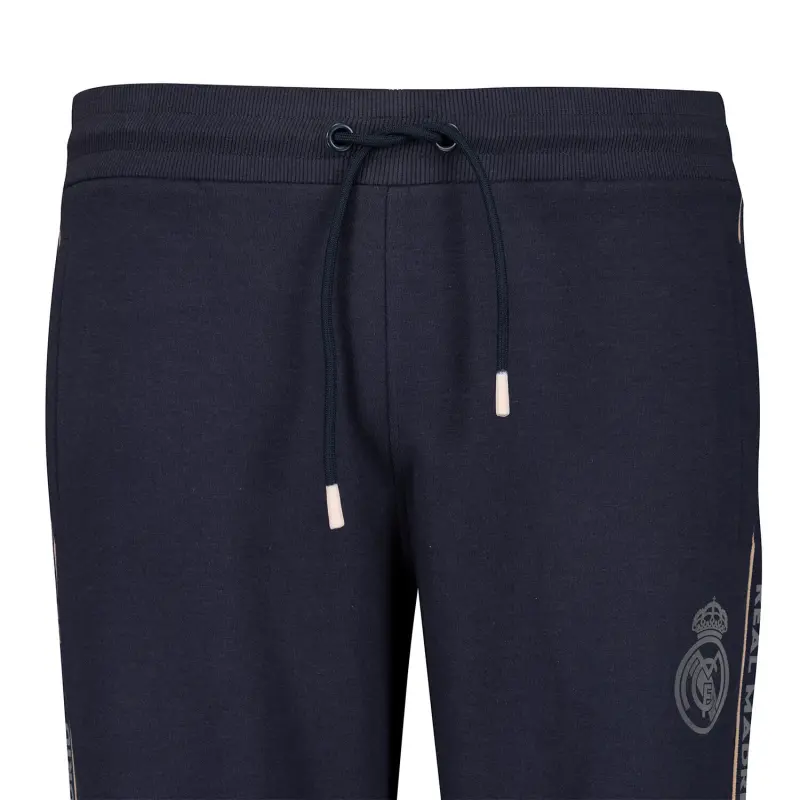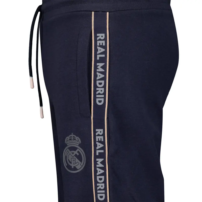 Designed for both sports wear and everyday style, this Real Madrid Men's Tape jogger in navy presents a modern cut and details that reflect the lastest in sportswear fashion. Featuring sleek tape on the side of the leg with "Real Madrid" proudly written.