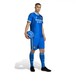 The iconic piping at the back hem adds a touch of style, and the technical heat-transfer logos show your passion for Real Madrid.