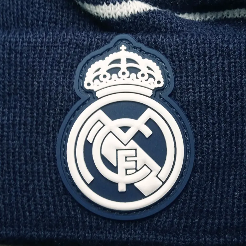 Keep cozy and support your team with the Real Madrid Pompom Beanie in navy, accented with iconic white stripes and a playful pompom on top. Soft, warm, and stylish, it's the ideal accessory for fans looking to stay comfortable while repping Real Madrid all season long!