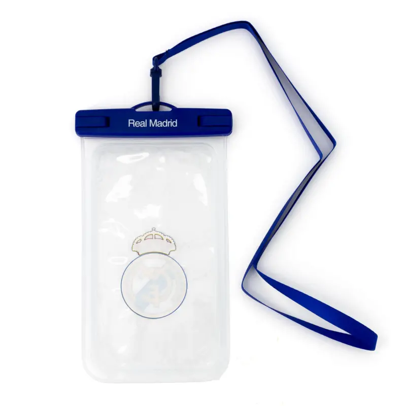 Connect with your passion using this Real Madrid waterproof phone case compatible with devices up to 7". Protect your device from water and take pictures at all times. Measurements: 2 x 11,5 x 19,5cm.