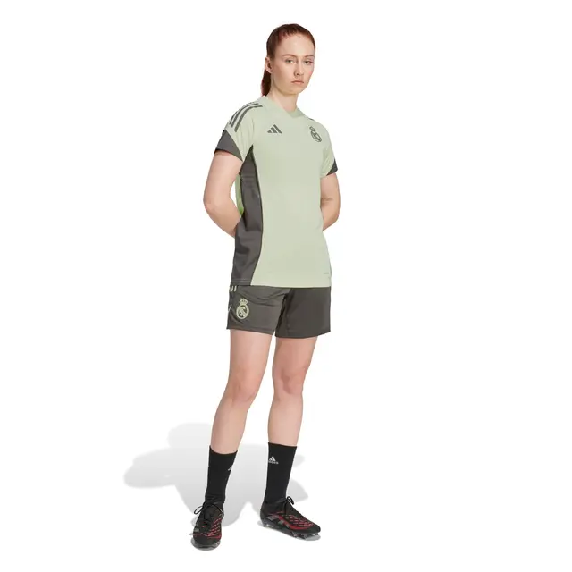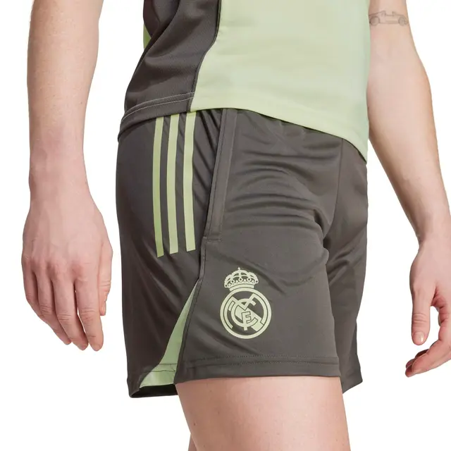 Bring your Real Madrid passion to the training ground. Part of the adidas kit the players wear before tackling league games, these short-length football shorts team moisture-managing AEROREADY with soft interlock fabric for comfortable movement on the field. A heat-applied badge shares your fandom without adding much weight.