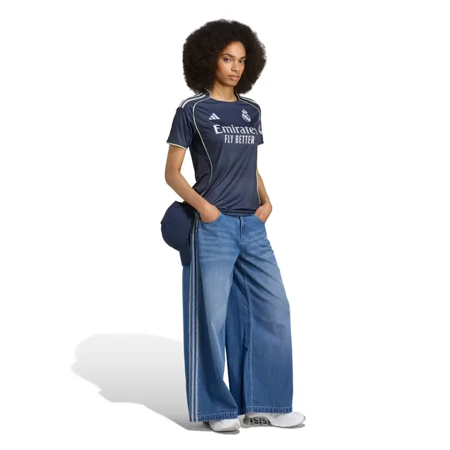 Real Madrid’s world-famous stadium is entering a new era – and this adidas away jersey pays homage to the magical evenings at the Santiago Bernabéu. The moiré-effect print and silver metallic details are reminiscent of the renovated arena’s gleaming facade. Moisture-wicking AEROREADY ensures comfortable wear, even during your favorite team’s away games.