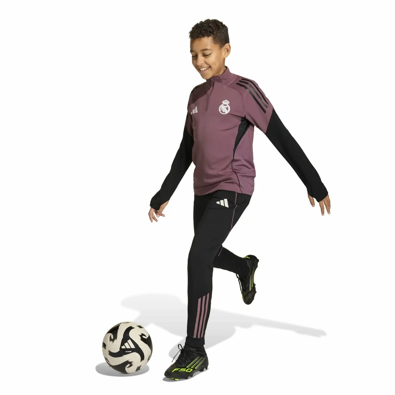 Bring your Real Madrid passion to the training ground. Part of the adidas kit the players wear before tackling league games, this juniors’ football top offers slim-fitting coverage on chilly days. Moisture-managing AEROREADY works hard to keep you dry while your body warms up. A heat-applied club badge on the chest reminds you why you’re out there.