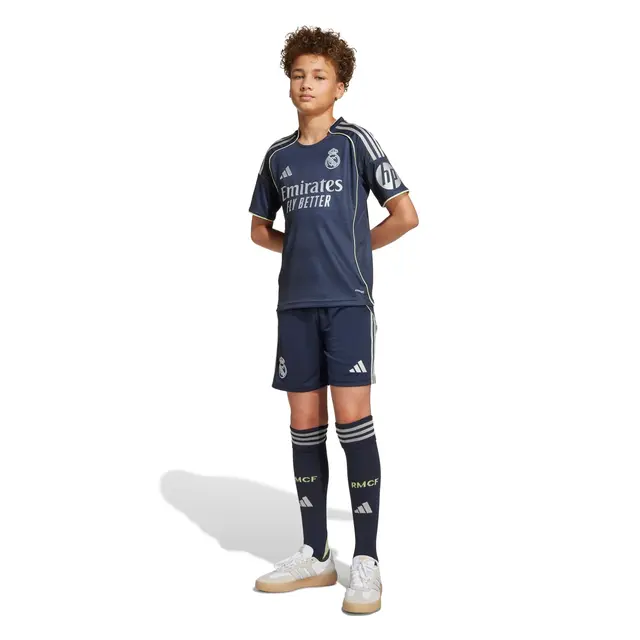 Whether you’ve been to the magical Bernabéu or not, show your football passion with this stadium-inspired adidas kit for kids and teens. It’s the away kit worn by the players, in a small size, and features a moiré effect and metallic details that reference the arena’s gleaming facade. Moisture-wicking AEROREADY keeps moisture at bay, whether you’re cheering on your idols in the stands or emulating them on the pitch.