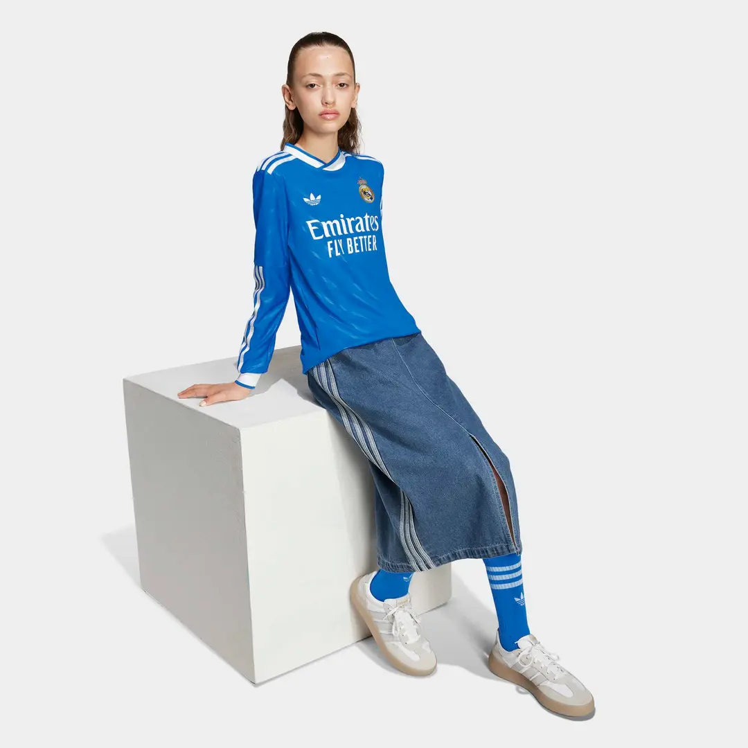 Feel at home in blue. This long-sleeved third jersey for kids and teens comes in a shade dear to Madridistas and fans of the 3-Stripes. The classic adidas Originals colorway is a subtle nod to the Bernabéu Stadium, making it the perfect hue to celebrate the ultimate football partnership. Serrated 3-Stripes and a Trefoil add an extra adidas vibe. AEROREADY manages moisture, keeping fans focused on the game.